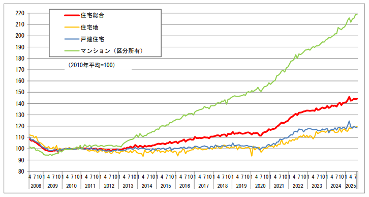 出典:国土交通省ホームページ「不動産価格指数」(公表日:令和7年11月28日、対象期間:令和7年8月・令 和7年第2四半期分の公表資料https://www.mlit.go.jp/totikensangyo/content/001970678.pdf)