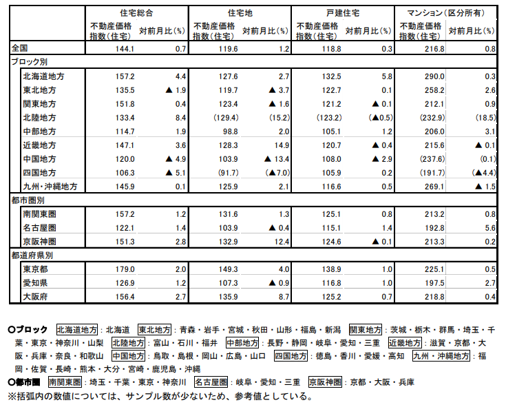 全国の不動産価格指数