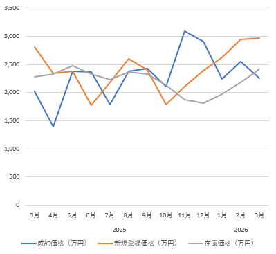 平均成約・新規登録・在庫価格の推移