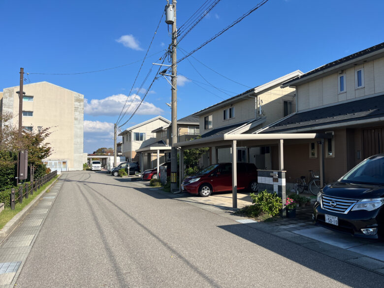 二日市は1丁目から5丁目まであり、野々市市役所や図書館、スーパーなどが徒歩圏内に集まる便利なエリアです。金沢市方面へのアクセスも良く、通勤・通学にも適しています。